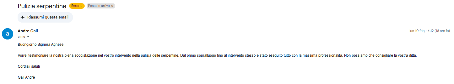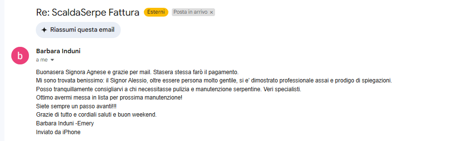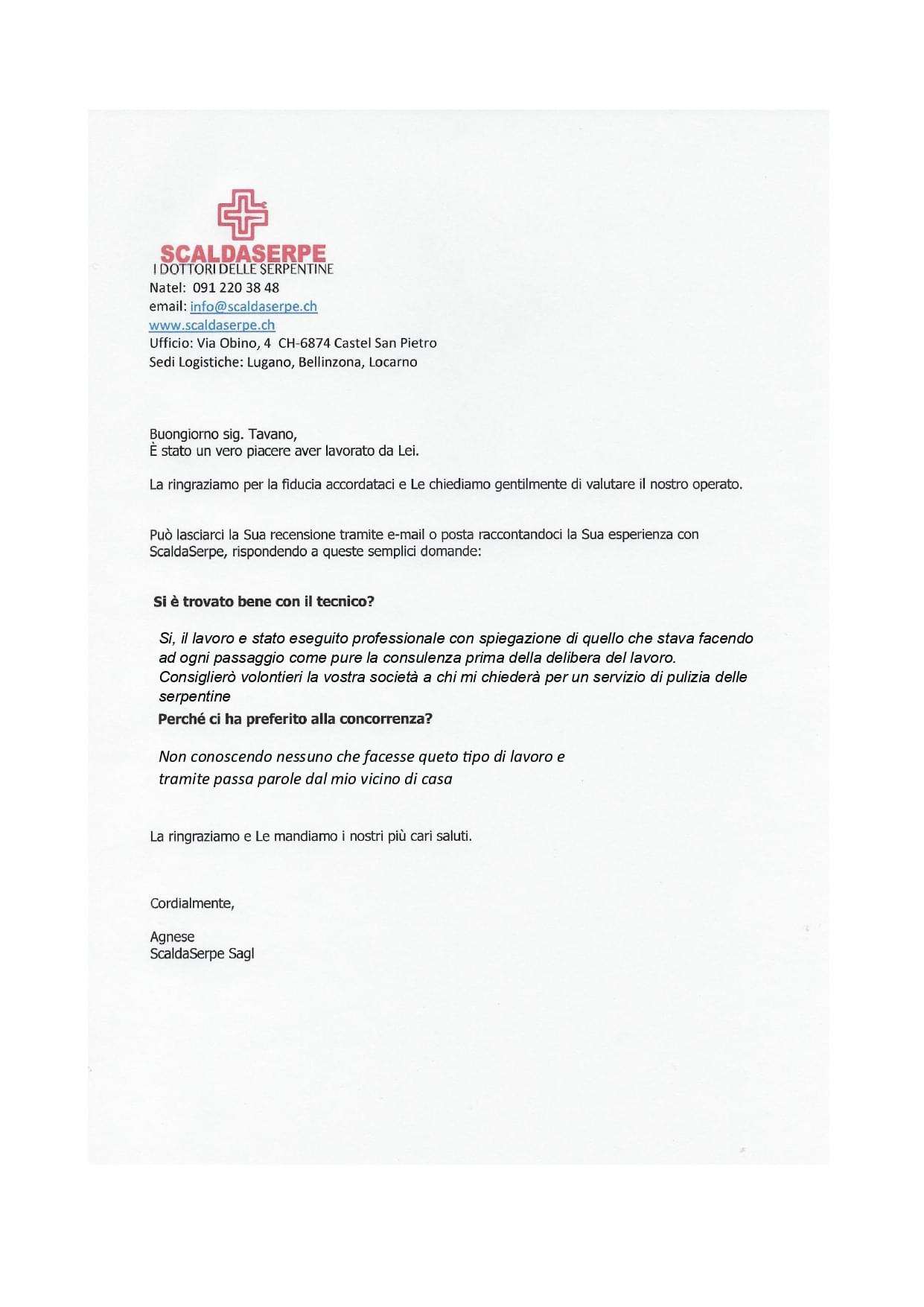 cliente informato come te che possa ribattere punto per punto sulla gestione delle serpentine e su cosa dovrebbe fare/aver fatto per garantirti di non correre nessun rischio a casa tua.